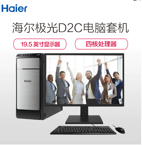 海尔(Haier)极光D2C商用办公台式电脑整机 19.5英寸(J3160四核 4GB 1TB win10 内置无线网卡